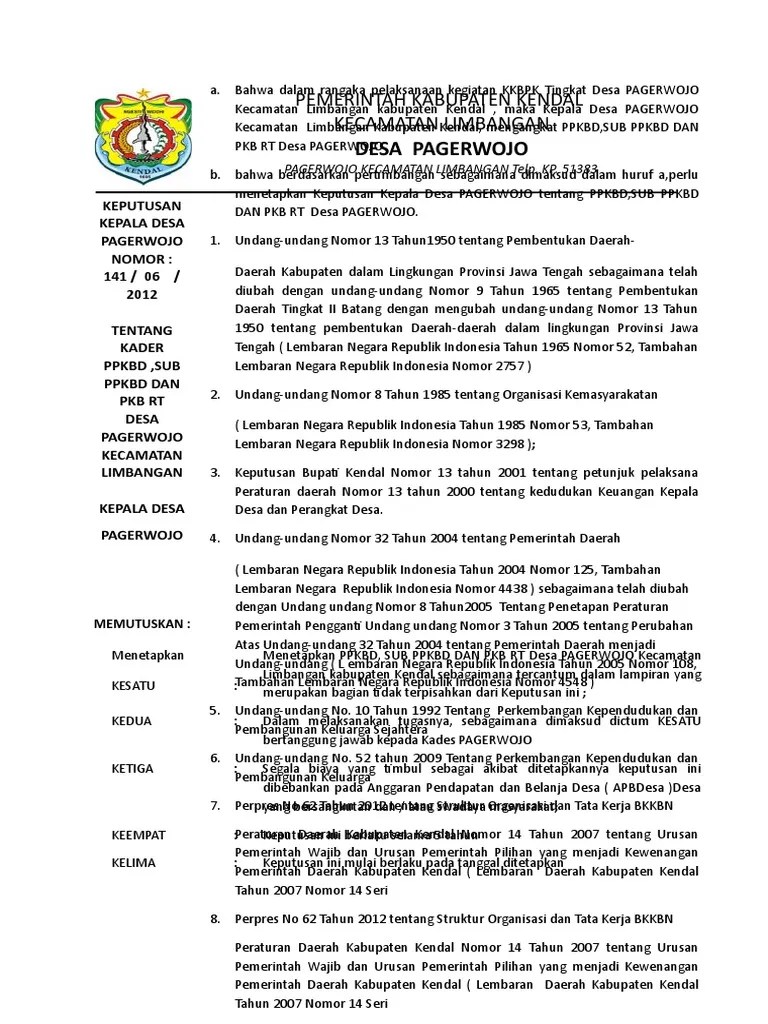 Pelatihan diberikan kepada 150 kader peran pembantu pembina keluarga berencana desa (ppkbd) dan sub ppkbd dalam wilayah kabupaten kutai barat, . 19, sk kepala desa tentang penetapan penerima bantuan lansung tunai . Pada era otonomi daerah, penyediaan dukungan . Kepala desa karangkemiri kecamatan karanganyar kabupaten kebumen keputusan kepala desa karangkemiri nomor : Kegiatan ini dihadiri sub ppkbd dari 11 desa di wilayah kecamatan sayung sebagai peserta.